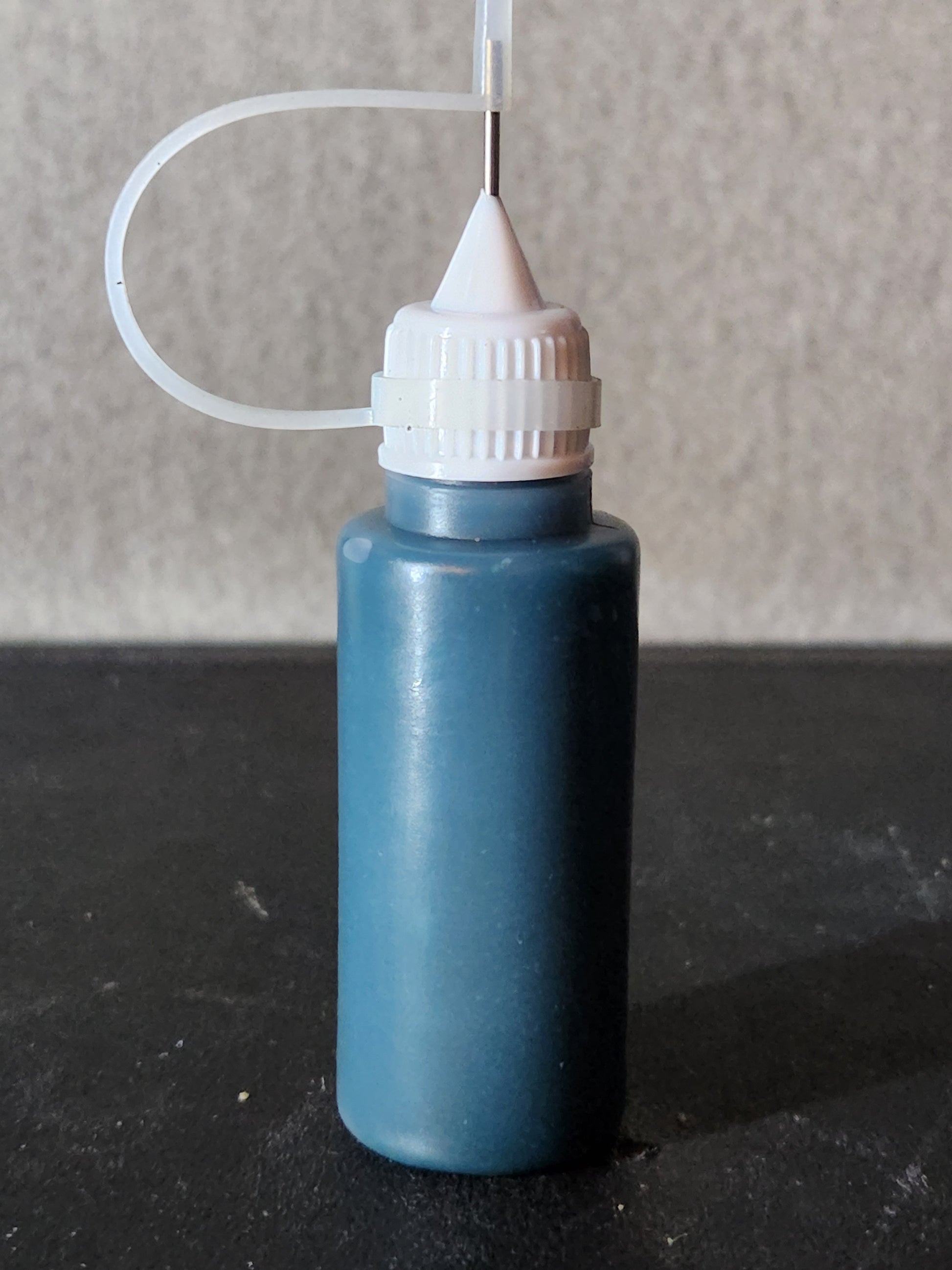 Comes in 20ml squeeze bottles with fine tip metal applicator.